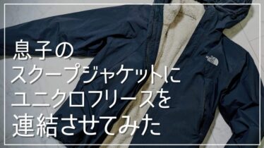 ノースフェイス独自のジップインジップ。スクープジャケットXXLサイズとユニクロのファーリーフリースXLサイズを連結させた結果は?冬に着ない息子のためにカスタムしてあげた。