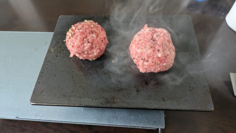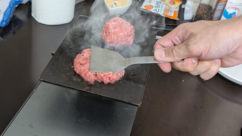 鉄板があったまったら焼き始めます。