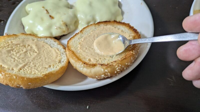 ちょっと味見しましたが、これだけでもうハンバーガーのあの味になります。ふつうに美味しいです。