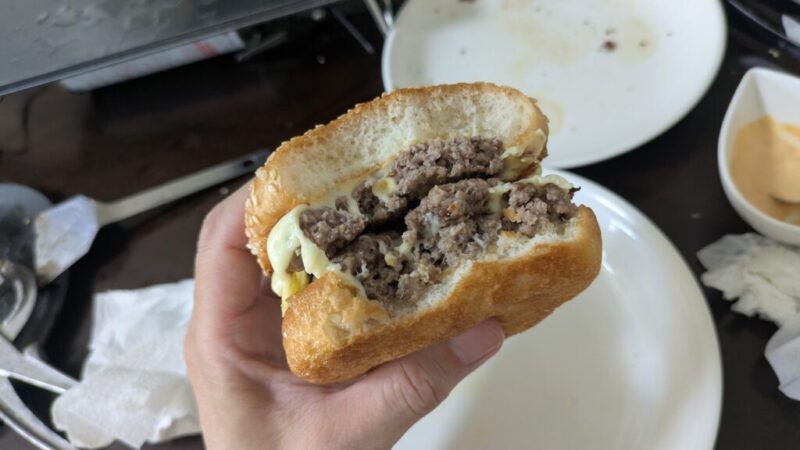 ダブルチーズバーガーなら挽肉はもう少し少ない量でも良かったですね