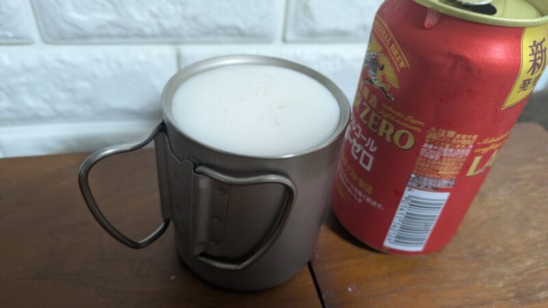 ノンアルコールビールのわりには泡立ちはまあまあ。(スノーピークのおかげかも?)
