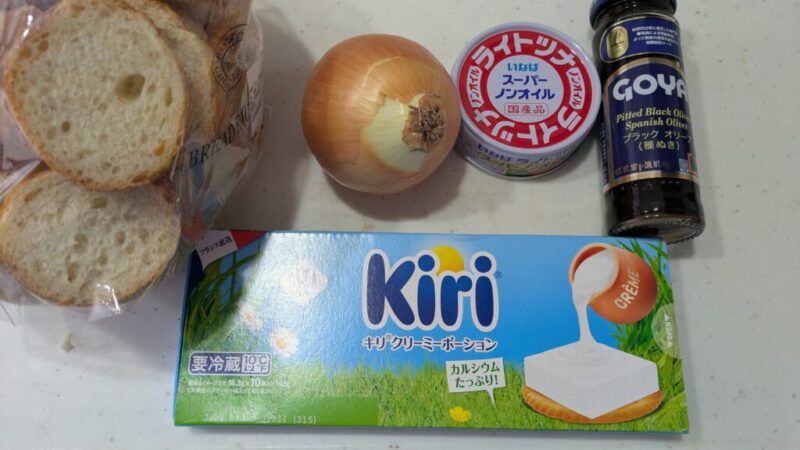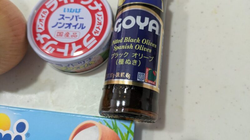 ご家庭にあまりない材料だと、種ぬきブラックオリーブぐらいでしょうか。