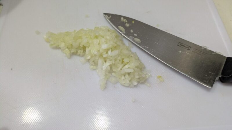 動画では、みじん切りチョッパーを使っていました。あるとより簡単ですね。