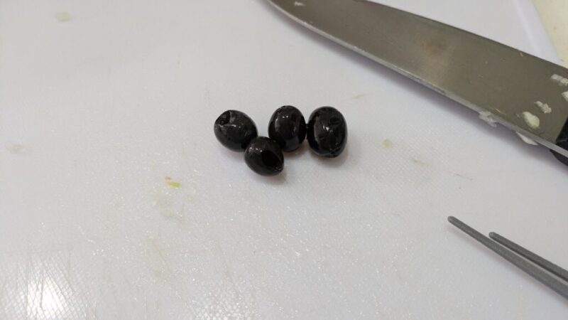 ブラックオリーブは4粒にしましたが、もうちょっとあっても良かったので5粒ぐらいがいいかもしれません。