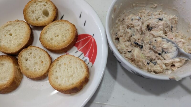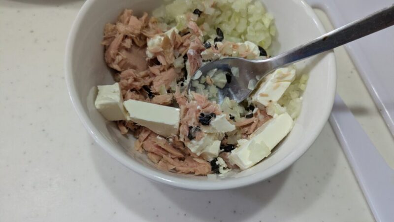 ツナのシーフード感のなかに、オリーブのさわやかさとクリームチーズのコクと少しの酸味。玉ねぎのシャキシャキとした食感。これらが合わさり絶妙なハーモニーを醸し出します。