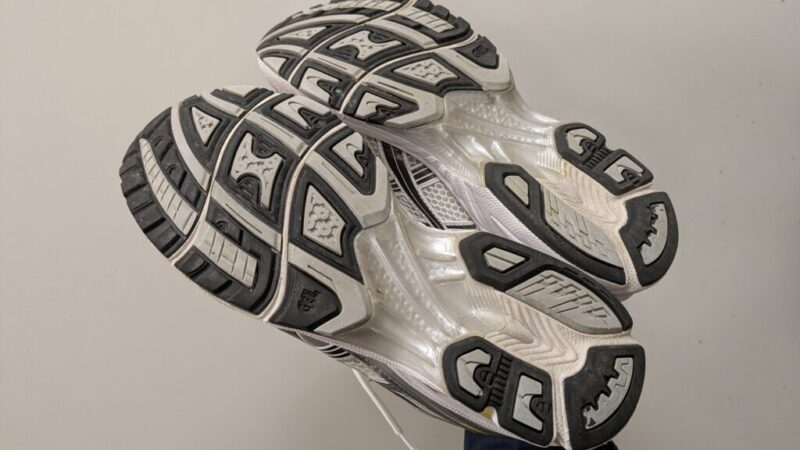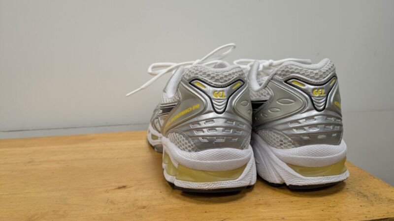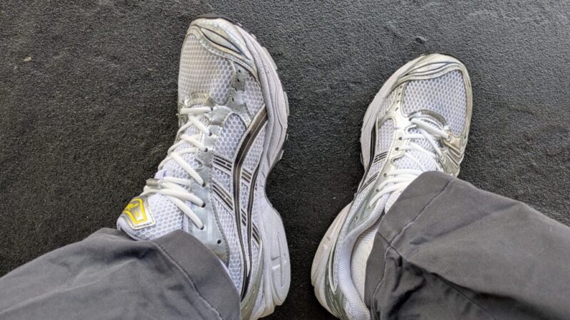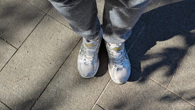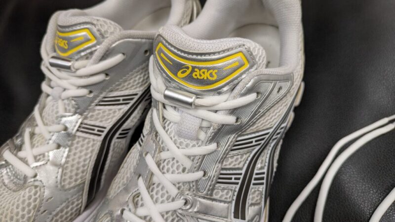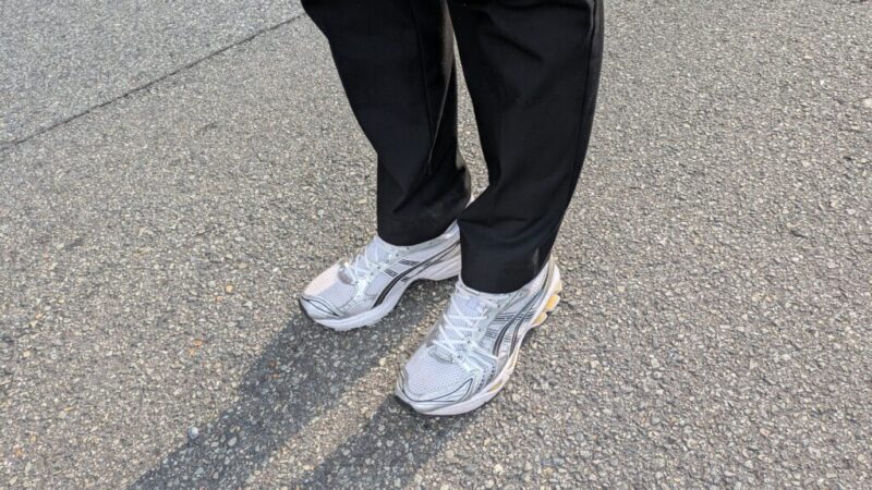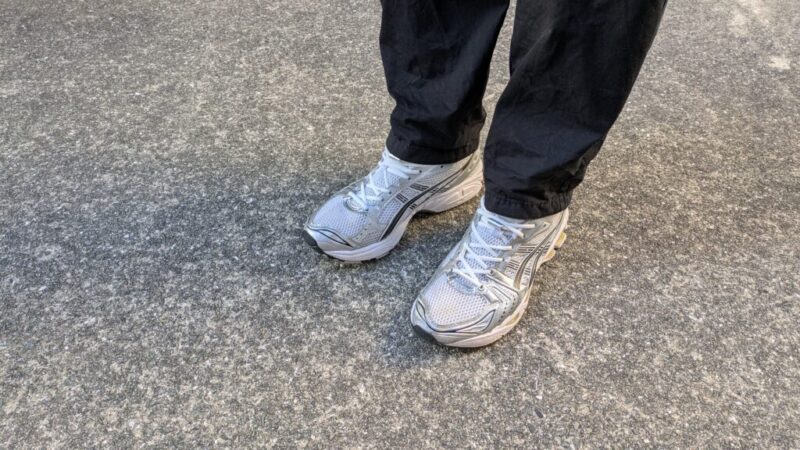 その中でもゲルカヤノ14はシルバー×ホワイトの光沢感、メッシュの軽快さ、そしてメタリックパーツの近未来っぽさがあるので、「ダッドシューズほどゴツくない」「でも地味すぎない」という絶妙なバランスが今っぽいんですよね。