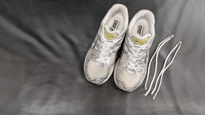 脱ぎ履きするときに毎回靴紐をほどいたり結んだりするのが面倒な人は、ゆるめに結んでそのまま脱ぎ履きしている人がほとんどだと思いますが、それをしちゃうとかかとの内側の生地が擦れて破れやすくなるんですよね。伸びる靴紐に交換すれば、そういったことが起きにくくなるし、とにかく脱ぎ履きが楽になるのでおすすめです。