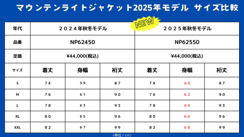 マウンテンライトジャケットといえば、昨年の2024年秋冬モデルでサイズが大幅にアップデートされました。