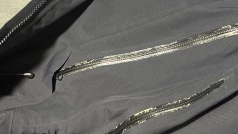 アークテリクスを象徴する「止水ファスナー」。見た目はスタイリッシュですが、実はここも大きな弱点。