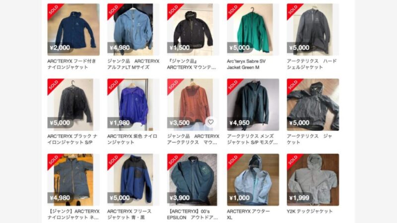 以上のようにアークテリクスは年数が経つとファスナーの故障や経年劣化などいろいろと問題が出てくるので、メルカリでは安値で取引されることが多いです。